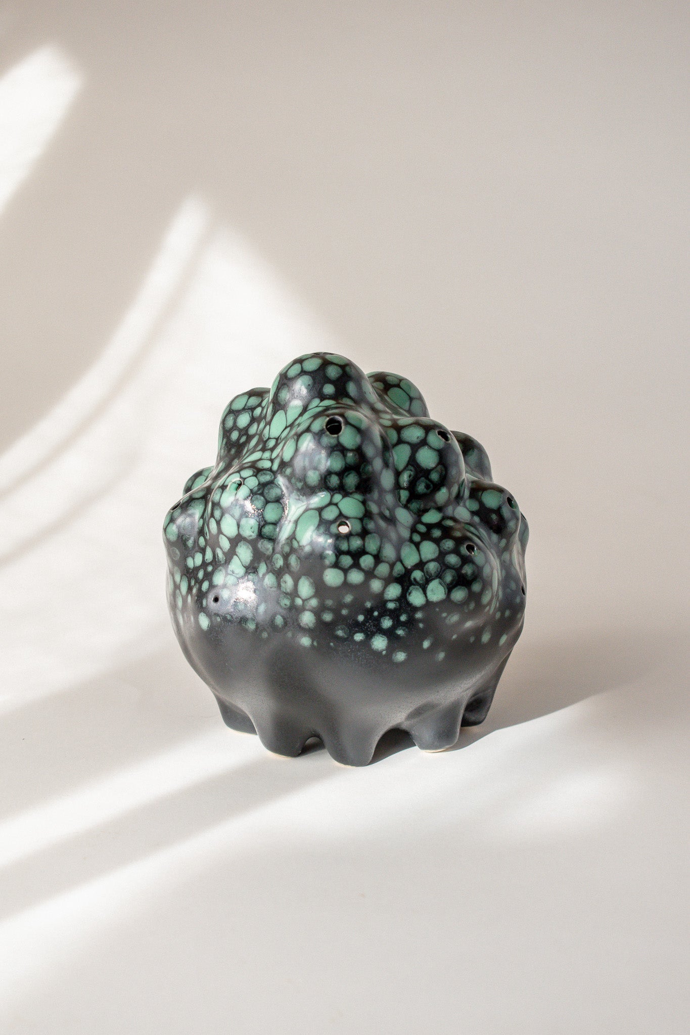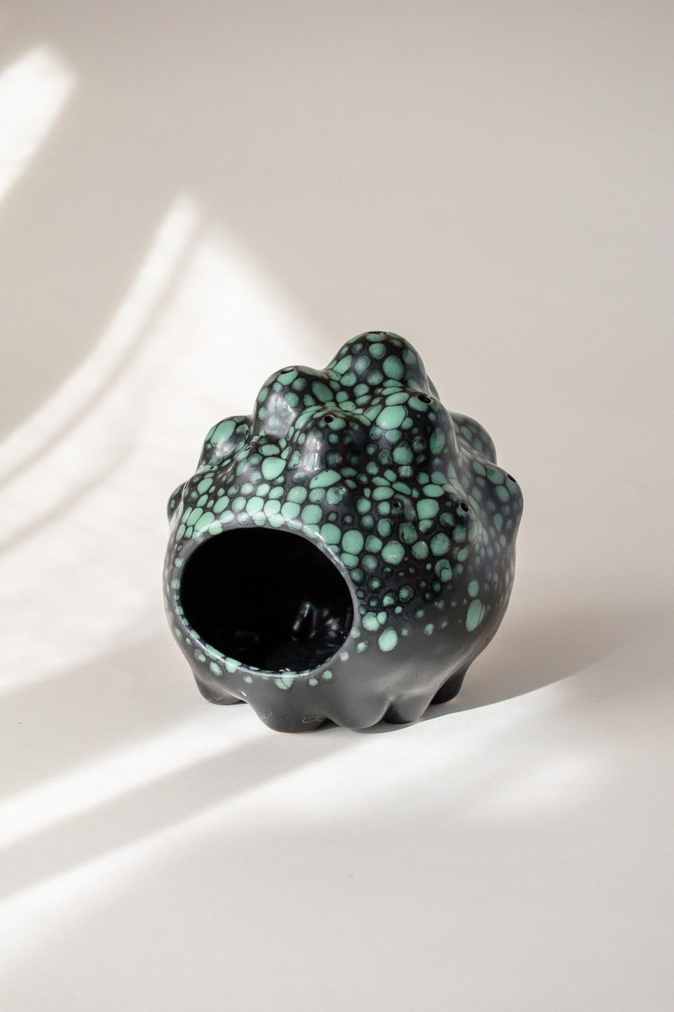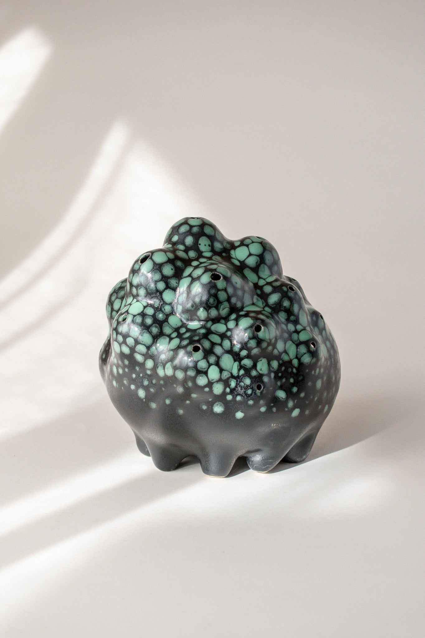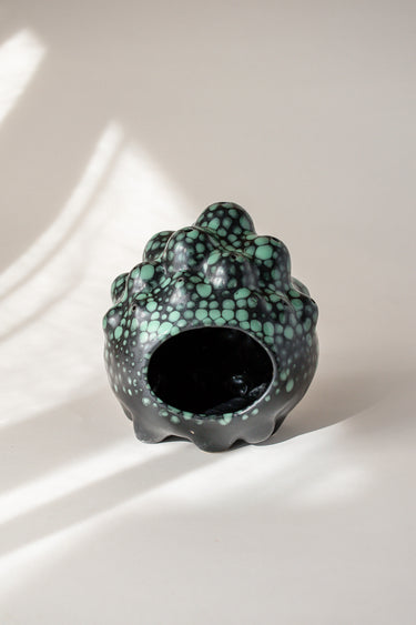 This cursed little creature has bubbled up from the stygian abyss to hold your burning incense and dispense the smoke out of its hole filled head or hold a small candle to provide spooky lighting to your magick rituals.